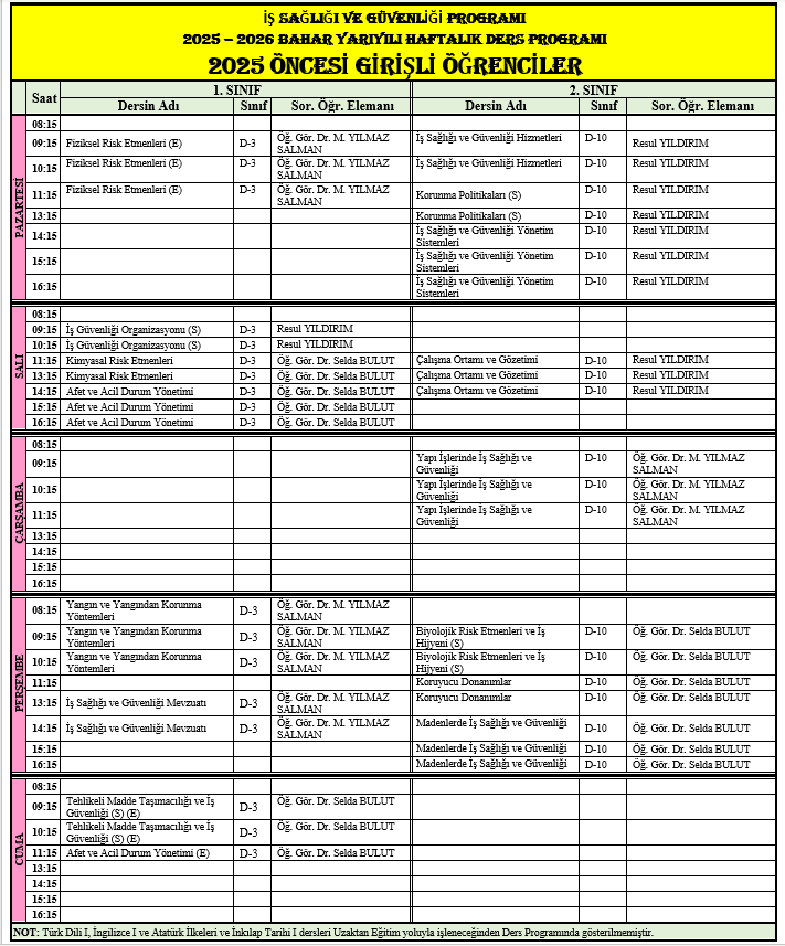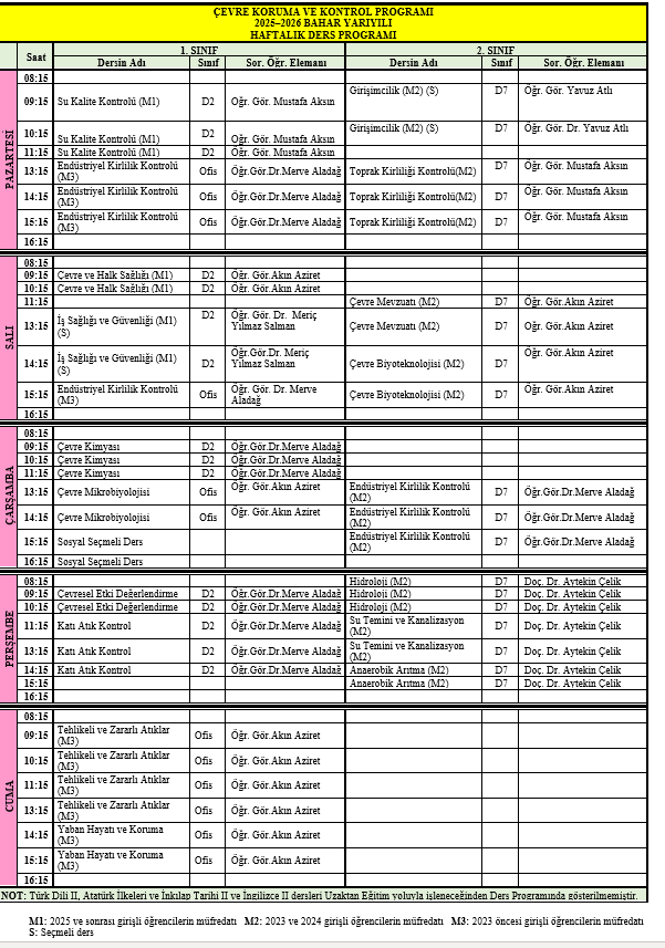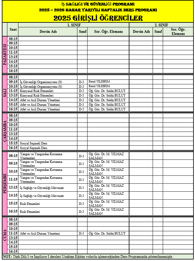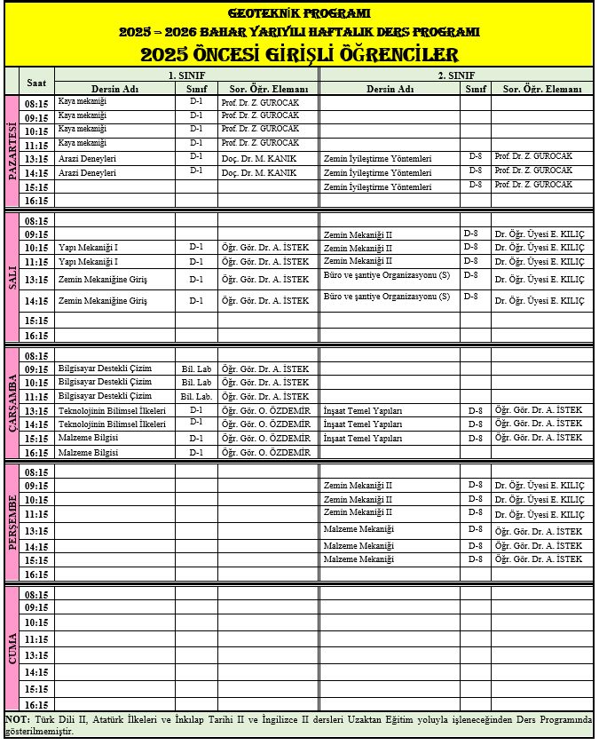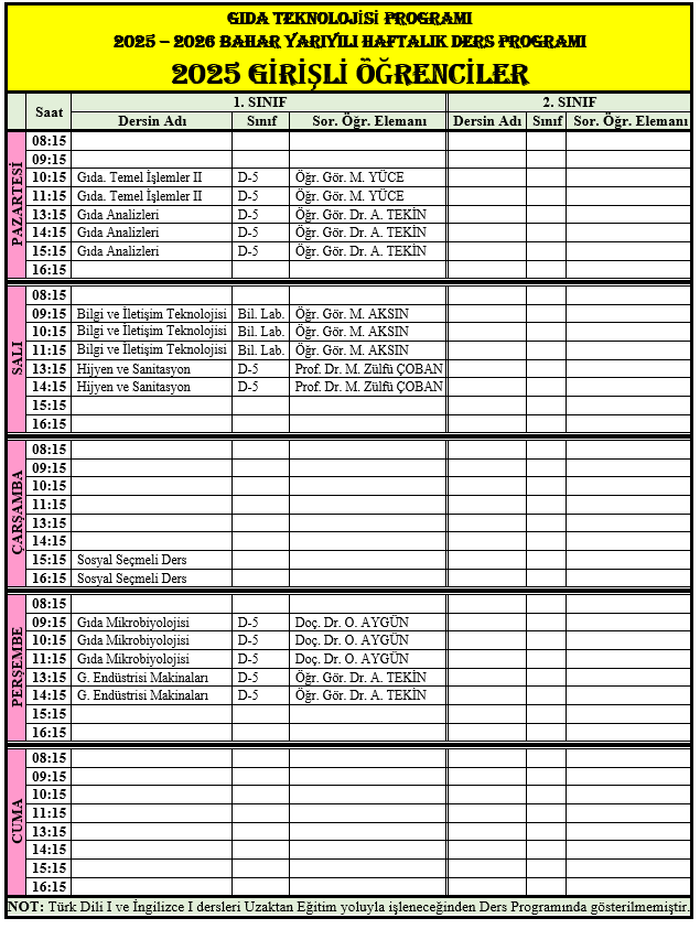2025-2026 Akademik Yılı Bahar Yarıyılı ...