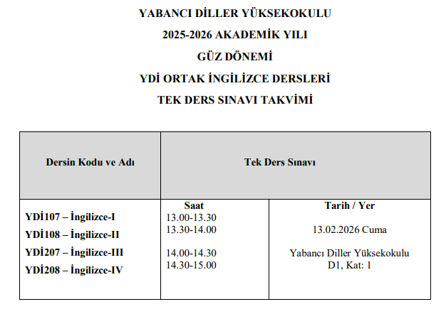 2025-2026 Güz Dönemi Tek Ders Sınav ...