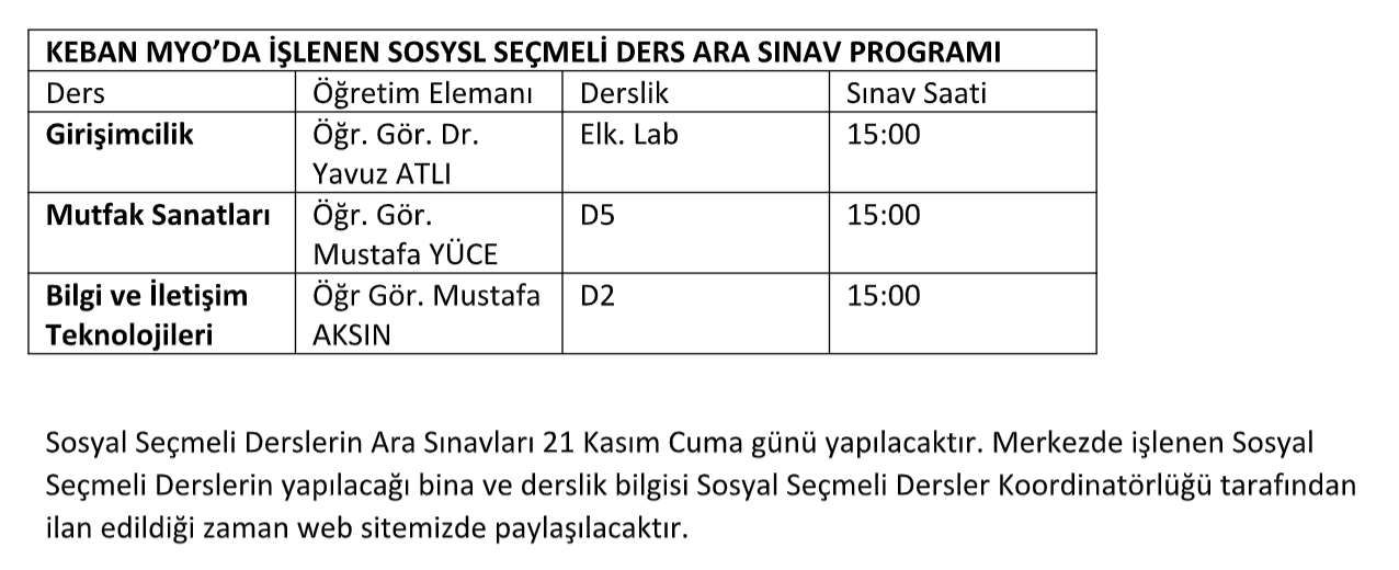 Keban MYO'da İşlenecek Sosyal Seçmeli ...