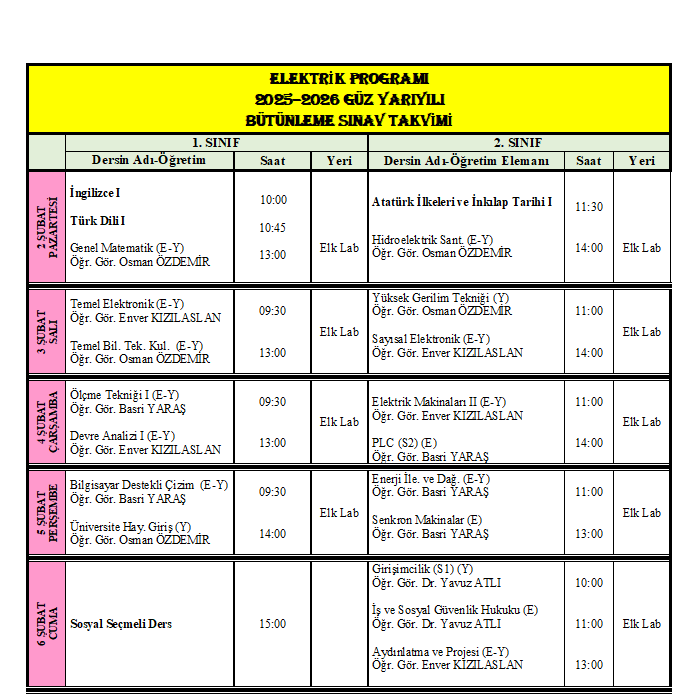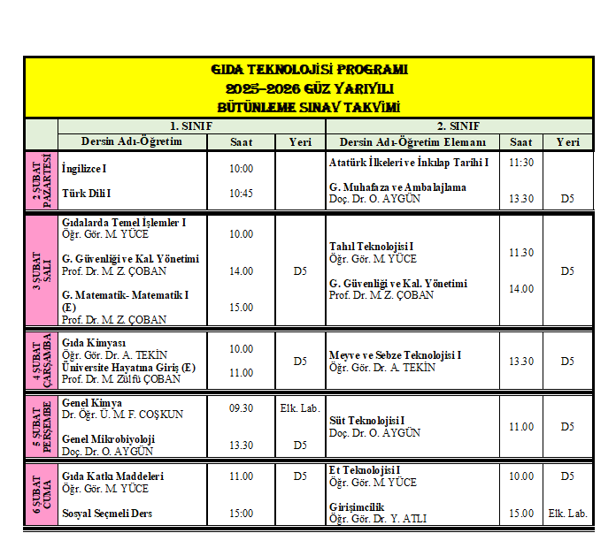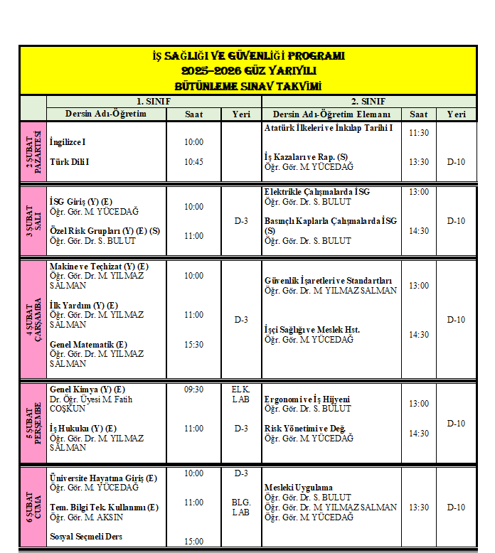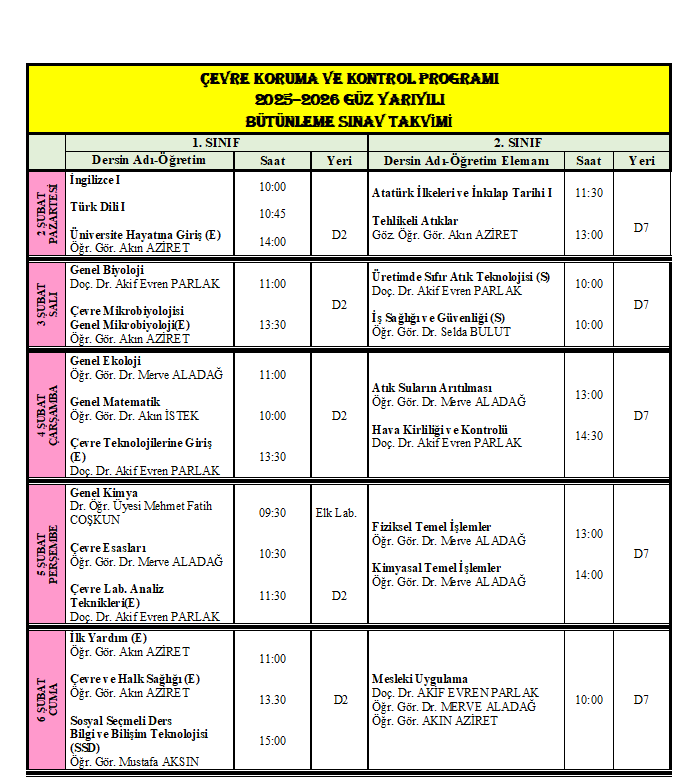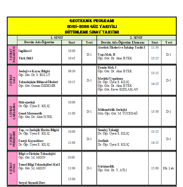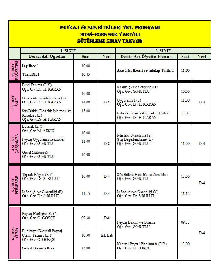 2025-2026 Güz Yarıyılı Mazeret Sınav ...