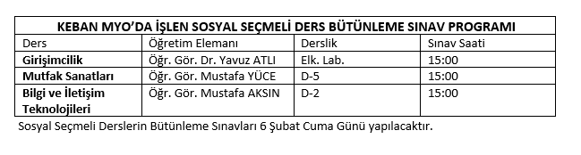 Ortak Dersler Final Sınavı Takvimi ...