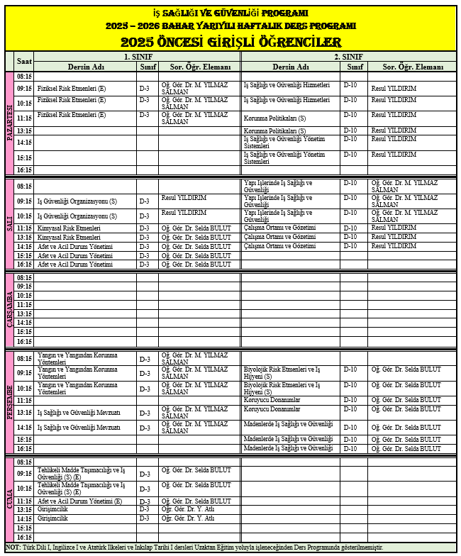 2025-2026 EĞİTİM ÖĞRETİM YILI BAHAR ...