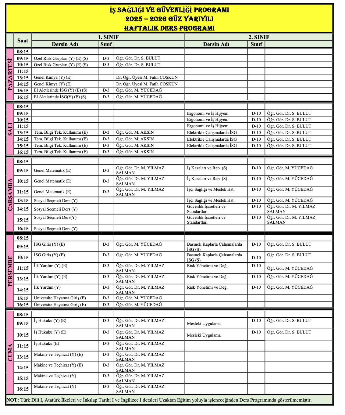 İş Sağlığı ve Güvenliği Programı Ders İçeriği